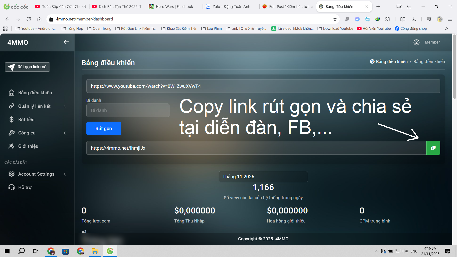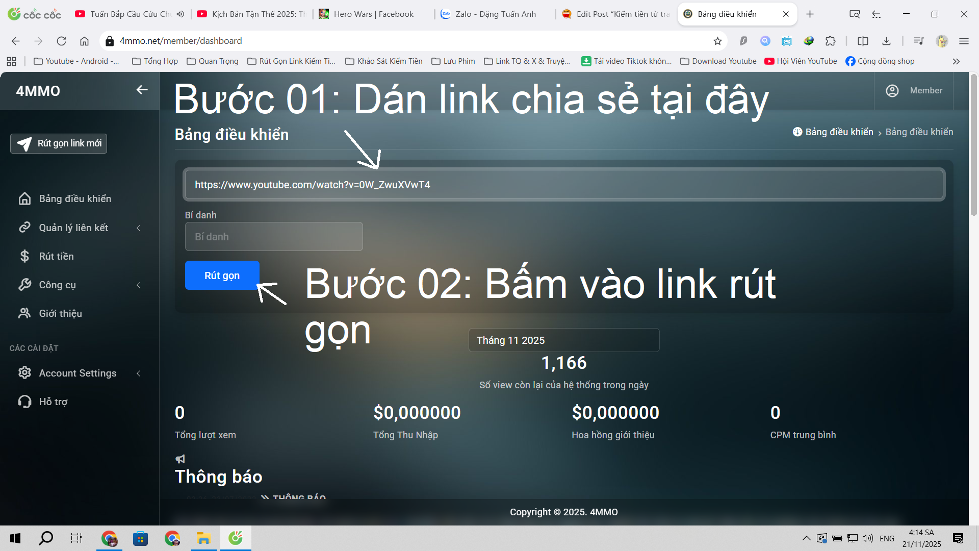 Bước 01: Đăng ký tham gia website rút gọn link kiếm tiền: 4MMO