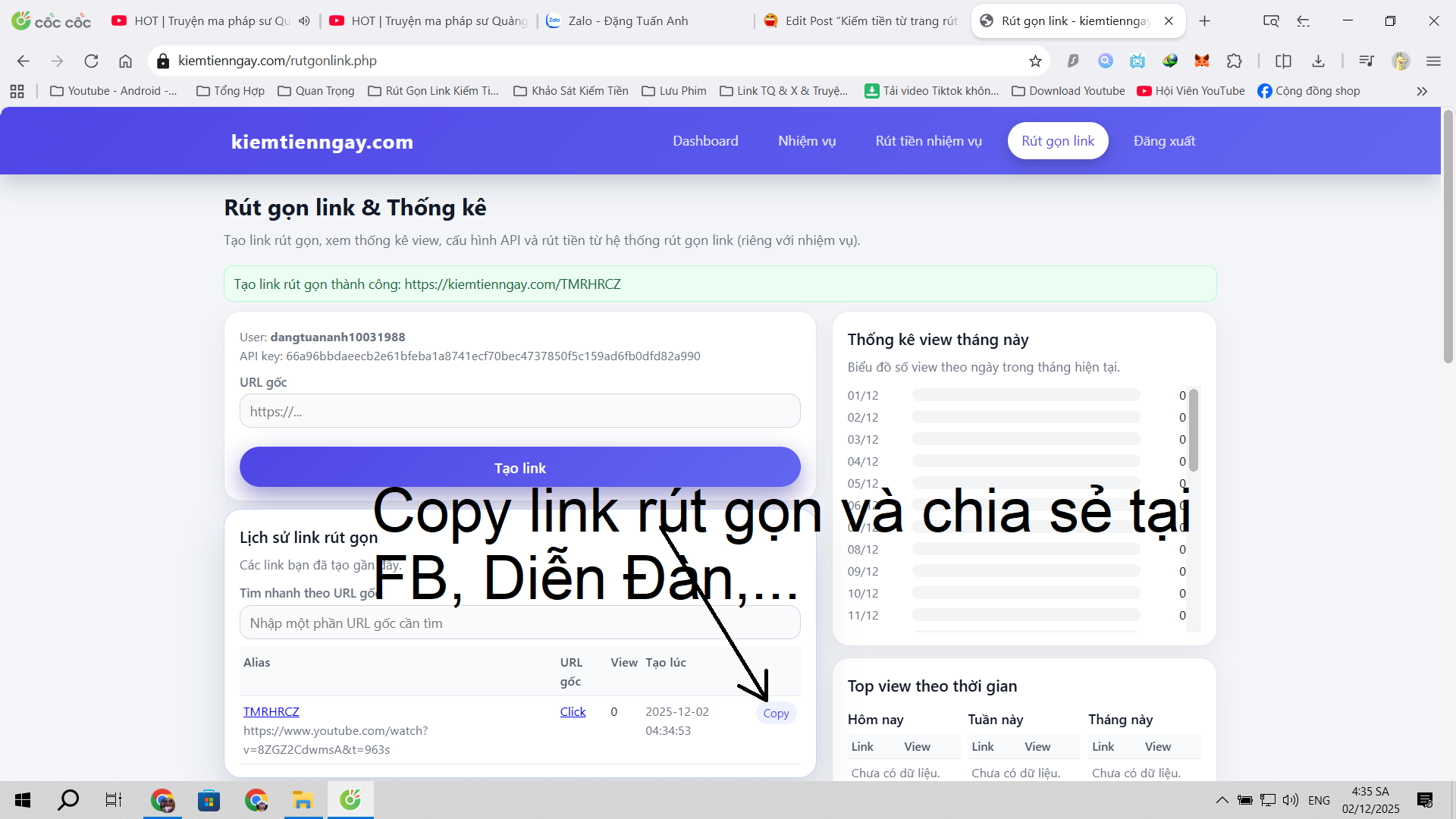 Copy link mà các bạn vừa rút gọn và lấy link rút gọn đó đem chia sẻ trên các diễn đàn, Facebook, Youtube, Tiktok và website cá nhân như của mình (nếu có). Nếu các bạn muốn biết KiemTienNgay hoạt động như thế nào về việc vượt link rút gọn để đến link gốc thì có thể click vào một trong những link mình chia sẻ ở dưới là những bài viết hướng dẫn phần mềm, phim trên website cá nhân của mình, video của youtube, tin tức báo chí (tất cả đều đã được mình rút gọn link) và bắt đầu thử tiến hành vượt link rút gọn.