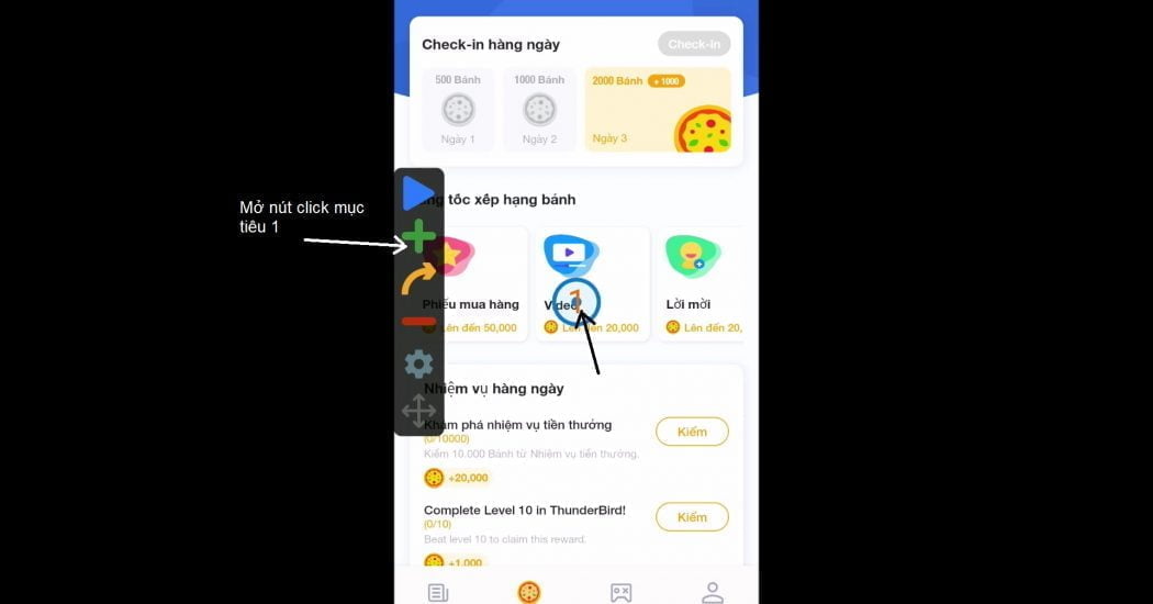Sử dụng AutoClick (của Android) để kiếm bánh trên ứng dụng News Pie